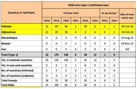Update on Polio Plus.  There have been 4 reported cases so far this year.  2 in each of the endemic countries of Pakistan and Afghanistan.